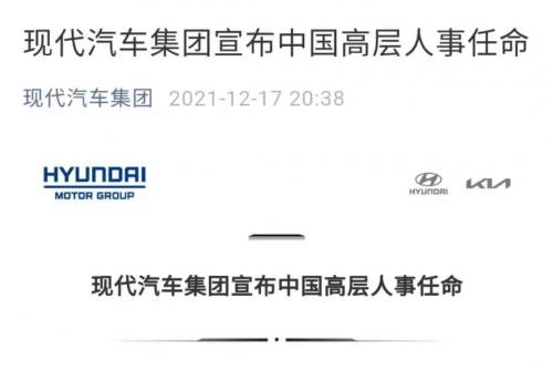 12月17日,现代汽车集团发布了一则非常重要的人事任命消息:将由李赫代替李光国,接替现代汽车集团的中国区总裁,此任命将从2022年1月1日生效。