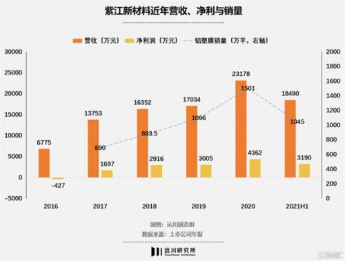 在今年11月的活动上,比亚迪表示将于明年开始,在纯电动车型使用的“大刀片”上,也使用铝塑膜软包电芯+外部铝壳封装方案,从而提高良率。天风证券预测,到2023年,来自比亚迪的铝塑膜需求将达到6234万平米,相当于紫江2020年出货量的4.2倍。