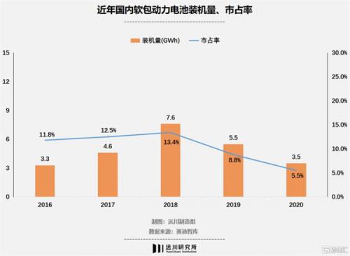 软包动力电池不仅没能成为主流,反而市占率在2020年被挤压到只剩5.5%,这让上游的国产铝塑膜举步维艰。