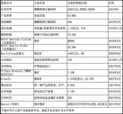 这给宁德时代借此大扩张,以超越同行——这些钱既用于建设产能,也接连砸向供应链,投资或控股锂矿、锂盐、正负极材料、制造设备等上下游公司——这一系列资本绑定,能带来相对稳定的产能和供应价格。
