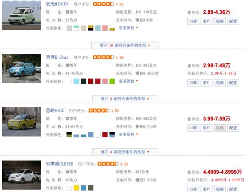 据统计,目前在售5万元内的微型电动汽车有宏光MINI EV、奔奔E-Star、思皓E10X、科莱威CLEVER、雷丁芒果、宝骏E100、恒润HRS1、东风新能源EX1、凌宝COCO、朋克美美、凌宝BOX、北汽大猫、尼欧II、北汽小毛、海马爱尚EV、比德文E3、宏瑞小虎等在售车型,而卖不动而停止生产销售的就有另外8款车型。