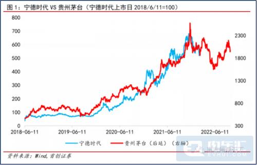 今日,首创证券发布了一则宁德时代的看空研报,在研报中,首创证券称,赛道股拥挤,形成了多杀多的局面,将贵州茅台在2021年的高点与宁德时代在2022年的高点做标准化,以贵州茅台的走势推断宁德时代在未来的走势。从拟合的情况来看,宁德时代的调整整体尚未结束,未来可能仍有20%下跌空间。在调整的过程中可能有反弹,因此建议逢高出货。