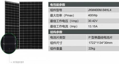 用户屋顶可铺设面积大约有70O,再结合当下市面常见的组件类型和用户意见,最终选用晶科400Wp组件,型号为JKM400M-54HL4。综合屋顶面积和家庭用电考虑,铺设32块最适宜。