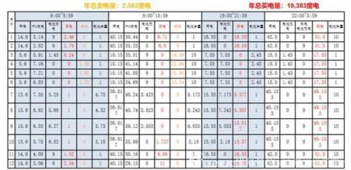 安装光储后:只需从电网买19,383度电(峰段4, 830度电,谷段14,552度电)年电费9,100元