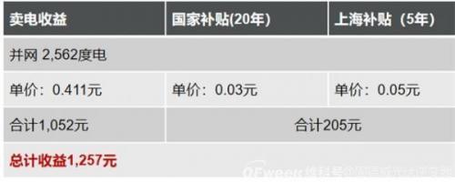 截止至2021年,户用光伏的国家补贴为0.03元/千瓦时,补贴20年;上海市级补贴为0.05元/千瓦时,补贴5年。