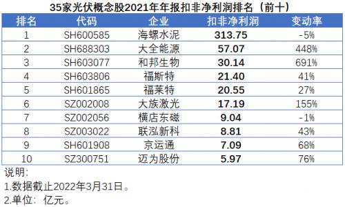 █从业绩增速来看,发电企业金开新能受益于光伏等新能源场站核准装机量同比增长129%以及2020年扣非净利润基数较低,业绩暴涨2171%。二氧化硅生产商凯盛科技业绩暴涨1061%。和邦生物、大全能源以及涉足光伏电池背板领域的乐凯胶片业绩涨幅分别达到691%、448%和413%。其它企业中,精功科技、金博股份、苏州固锝、大族激光、双良节能业绩涨幅在100%-300%之间。