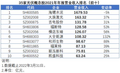 █从营收规模来看,近期刚刚宣布进军光伏领域的海螺水泥营收超过1600亿元,未来公司有望借助光伏发电建立能耗和碳排成本优势,引领高耗能、高碳排的水泥行业实现“碳中和”目标。