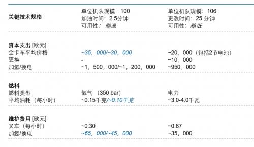 从技术角度看,燃料电池叉车结合了纯电池叉车的优点,如在封闭空间不受限制的使用。同时又有着内燃机叉车的优点,即高利用率、高性能、连续性能水平、快速加注等。下面是假设案例下的两者比较: