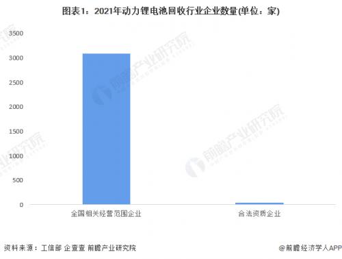 注:数据截止日期为2022年1月12日。全国相关经验范围企业指全国在业/存续企业中经验范围包含动力电池回收的注册资本2000万元以上企业。合法资质企业指工信部发布“新能源汽车废旧动力蓄电池综合利用行业规范条件”企业名录公示企业,拥有梯次利用和再生利用资质。