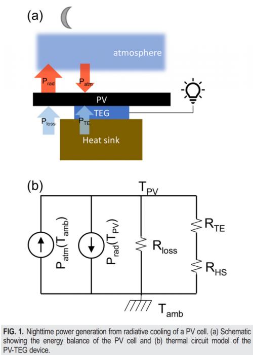 Fan及其同事利用了辐射冷却的概念,在这种现象下,材料在吸收了一整天的太阳能之后将热量辐射到天空中。其他人之前已经利用这种现象来制造冷却涂料和节能空调。并且,由于这种现象的影响,朝向天空的标准太阳能电池在夜间的温度低于周围空气的温度,这会导致热量从周围空气流向太阳能电池。Fan等正是利用这种热流动来发电。