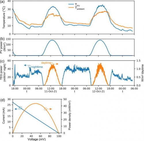 2021年10月,研究团队在斯坦福大学的一处屋顶上对TEG集成的太阳能电池原型机进行了为期三天的测试。结果发现,夜间发电达到了50毫瓦/每平方米。他们估计在更热更干燥的气候中,相同的装置可以达到100毫瓦/每平方米。