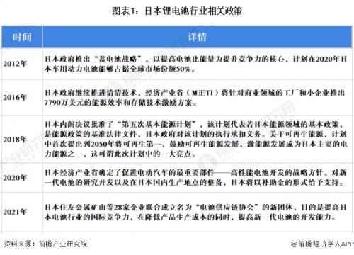 日本政府机构NEDO自上世纪80年代开始对锂离子电池的研发给予长期稳定的支持,制定了动力蓄电池研发路线图和行动计划,着重对锂离子动力蓄电池单体、模块、标准、评价及关键原材料进行研发攻关。具体的锂电池行业规划出台于2012年,日本政府推出“蓄电池战略”,指出行业发展以提高电池比能量来提升竞争力;2016年开始,日本开始以财政政策推动锂电池行业的发展,2020年,日本以补助金的形式推动高性能电池开发;2021年,随着电池供应链协会的成立,日本电池技术有望迎来新的突破。