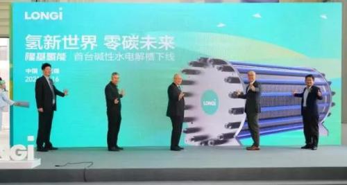 (2021年10月16日,隆基氢能首台碱性水电解槽下线)