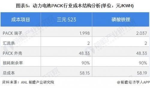 根据ANL提供的数据来看,动力电池PACK的成本绝大部分来源于PACK外壳,其余则由PACK端子和汇流条组成,以目前市场占有率最高的两种结构的动力电池三元523和磷酸铁锂动力电池为例,三元523的PACK端子成本为1.998元/KWH,磷酸铁锂为2.037元/KWH,而成本最高的PACK外壳,两种电池的成本是一样的,为48.33元/KWH。