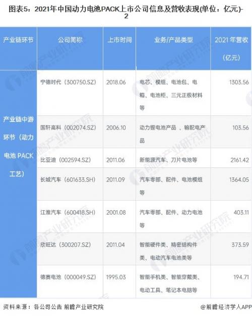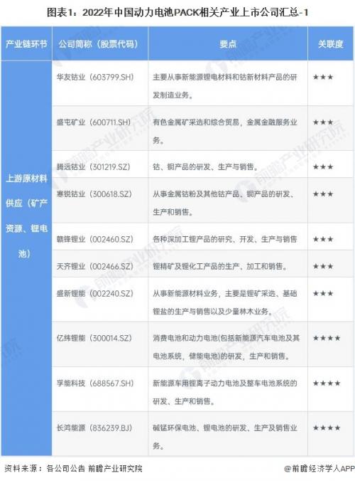 1、动力电池PACK产业上市公司汇总