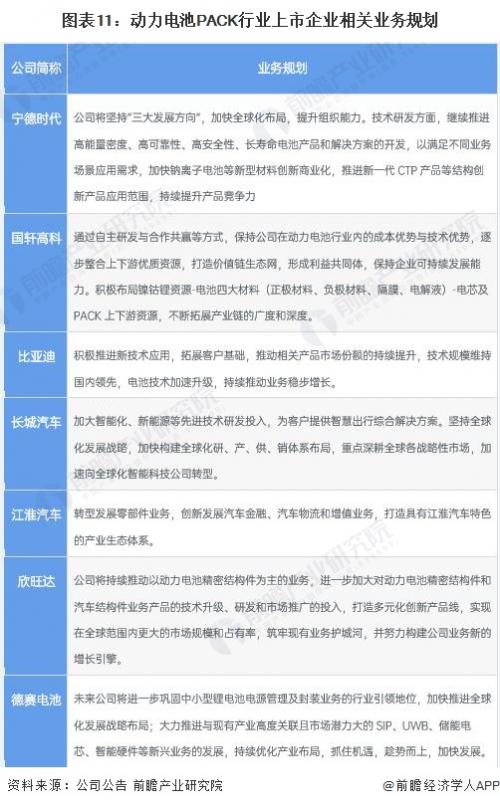 4、动力电池PACK行业上市公司动力电池PACK产品业务规划