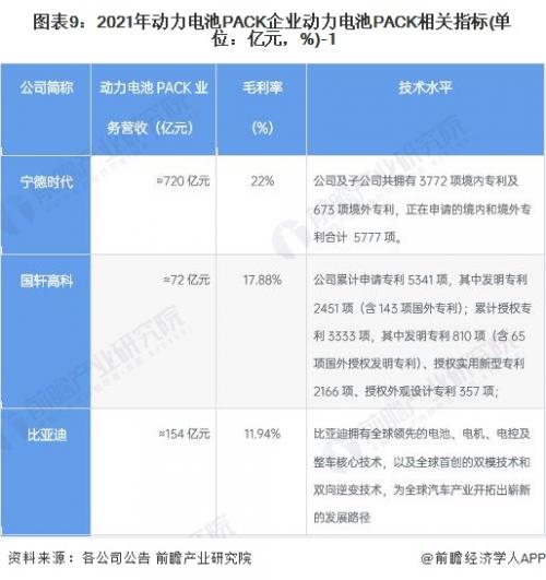 动力电池PACK行业主要上市公司:目前国内动力电池PACK行业的上市公司主要有宁德时代(300750)、国轩高科(002074)、比亚迪(002594)和长城汽车(601633)等;