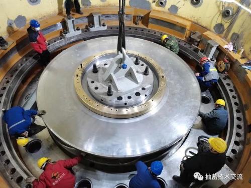 高转速化与高比转速化方向发展。现在世界上已投运的400m水头、10OMW以上的近百台大型蓄能机组中,所选用的转速都在360r/rain以上,其中最高转速为600r/rain。由于高水头低比转速水泵水轮机转轮形状像一个扁平的盘子。转轮进口(水轮机方向)高度很小且因水头高,为保证一定的强度,转轮叶片做得较厚,这些因素都使得转轮摩擦损失和迷宫漏水增加。使水泵和水轮机工况的效率下降,尤其是当水泵比转速≤30(m ・ma/s)后,其效率明显下降,当≤25(m ・m/s)则急剧下降。因此,水泵水轮机的技术发展方向之一是在提高机组工作水头(扬程)的同时尽量不降低其比转速。水泵比转速系数K)在60年代约在1000- 2500之间,到70年代,已达到2500~3200,英国的迪诺维克蓄能机组达3600。但是,提高比转速又受到电站淹没深度的限制。水轮机吸出高度值愈来愈低,如阳江、敦化、长龙山已近100米左右。另外。由于比转速的提高。使机组的振动、空蚀和噪音加剧。受力部件的应力与应变量增大,因此机组各个结构部件的刚度都要加强。