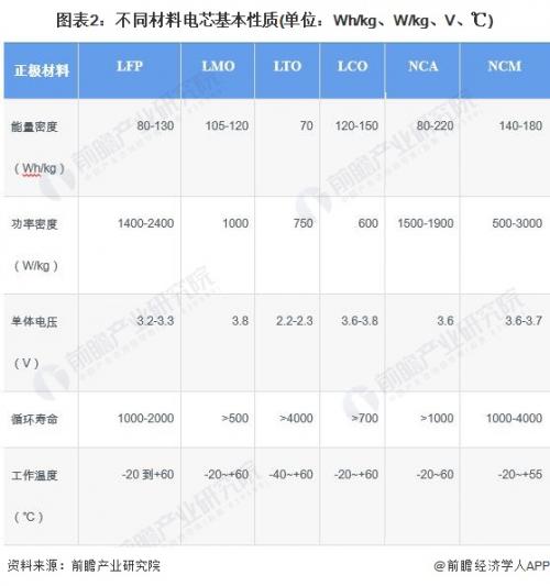 动力电池模组是指动力电池单体经由串并联方式组合并加保护线路板及外壳后,能够直接提供电能的组合体,是组成动力电池系统的次级结构之一。动力电池单体即电芯,按正极材料来分,主要包括钴酸锂、锰酸锂、磷酸铁锂以及镍钴锰酸锂三元材料等。不同材料电芯基本性质如下表所示: