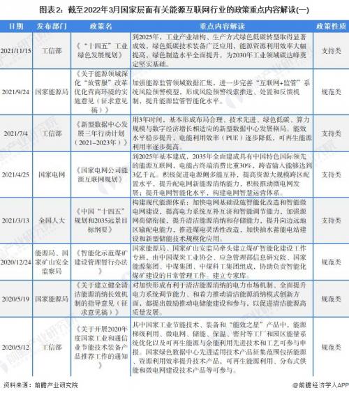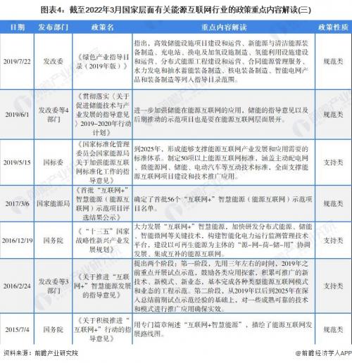 自2015年以来,国务院、国家发改委、能源局等多部门都陆续印发了支持、规范能源互联网行业的发展政策,内容涉及能源互联网行业历年的发展目标、能源互联网在实体层的建设布局等: