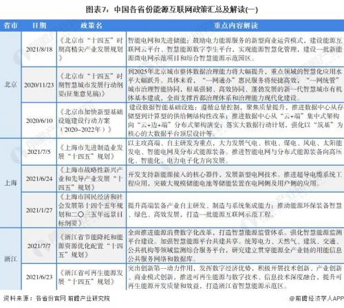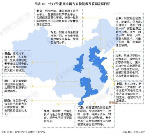 “十四五”期间,我国主要省份也提出了能源互联网行业的发展目标,北京明确到2025年建设能源互联网云平台,上海要求到2025年新建20万个充电桩,加强智能电网的推进工作,其他省市也在能源互联网平台建设、分布式能源协同等方面做出规划: