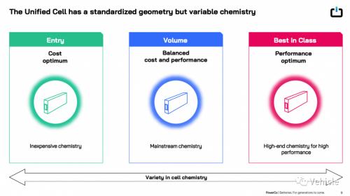 统一的电芯采用相同的外形尺寸和结构,但根据其内部的材料配方不同,按照成本,性能的差异分为: