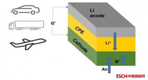 从成分来看,这款锂空气电池由锂金属阳极、空气基阴极和固体陶瓷聚合物电解质(CPE)三部分组成。在放电和充电时,锂离子(Li+)从阳极到阴极,然后返回。