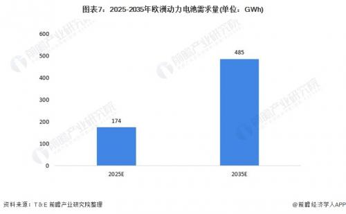 随着欧洲新能源汽车市场的爆发,欧洲动力电池市场需求将大幅增长。据T&E估计,按照欧盟的碳排放目标,2025年欧洲动力电池需求量有望达174GWh,到2035年将达485GWh。