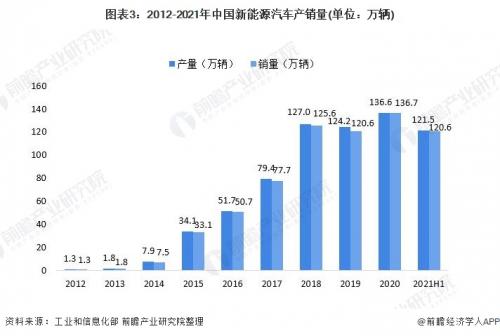 2021年以来,新能源汽车销量增速较快。6月,受到车用芯片短缺、原材料价格上涨等不利因素影响,我国汽车产销呈现同比下降,但新能源汽车产销量依旧保持高速增长。2021年1-6月,我国新能源汽车产销分别完成121.5万辆和120.6万辆,同比均增长2倍。