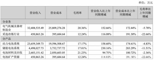 电池材料及回收业务、电池矿产资源业务和其他业务营收也有较为明显的增长,不过这几项业务占总营收的比重都有所降低。