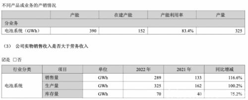 2022年宁德时代电池产量325GWh,同比增长100.2%,电池销量289GWh,同比增长116.6%,库存量70GWh,同比增长75.2%。
