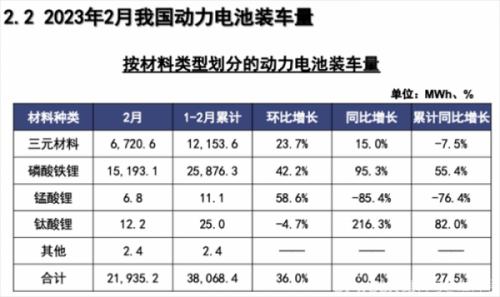 数据显示,今年前两个月,磷酸铁锂电池装车量25.9GWh,同期三元锂电池装车量为12.2GWh,前者同比猛增55.4%,后者却下滑7.5%。市场空间在增长,而三元锂电池不增反降,市场方向很明显。