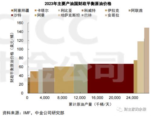 不光沙特是这样,全球主要原油出口国都有这问题,很多原油生产国的政府,就指望着卖油赚钱,维护财政平衡。有鉴于此,有研究机构就总结了2023年全球主要原油出口国维持财政收支平衡所需要的油价,这就叫“财政平衡油价”(见下图)。