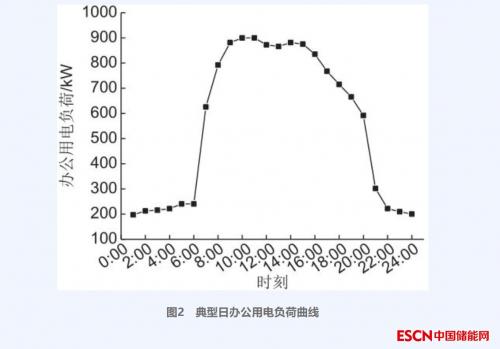 本工作研究对象为北方某办公园区,园区整体建筑面积约3万m2,园区主体建筑物坐北朝南,主要用于办公、会议等。园区附近建设有自发自用光伏电站,光伏装机规模为5 MW。为增加新能源消纳利用,园区增设了一套250 kW/1.5 MWh的铁-铬液流电池储能系统。白天通过吸收弃光,将电能存储至电池中转变为化学能;夜晚将化学能转换为电能,减少部分市政电消耗。