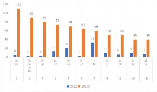 以2025年规划的加氢站数量为节点,我们整理出国内TOP10加氢站规划建设城市。
