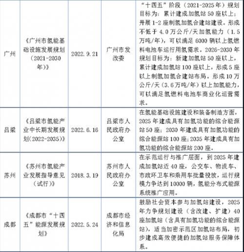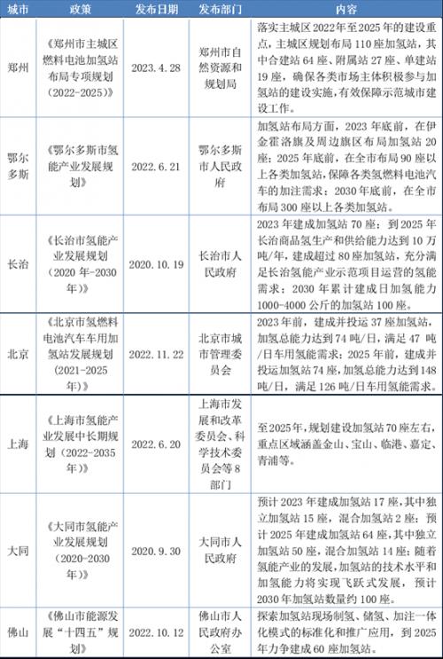 表1:2025年加氢站规划数量TOP10城市出台政策详情