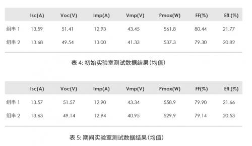 N-TOPCon组件和P-PERC组件的功率变化,如表4和表5所示: