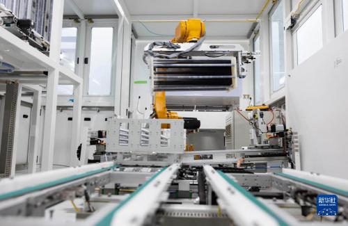 8月22日,在四川省丹棱县经济开发区的眉山琏升光伏8GW高效异质结电池项目电池车间,智能机器人搬运物料。新华社记者江宏景摄