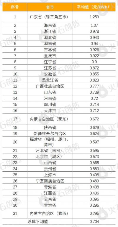 表2全国31典型省市平均峰谷电价差