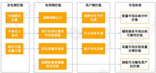 储能在不同应用场景下产生不同价值,在发电侧的价值主要为平滑发电,在电网侧的价值是平稳电网运行,而在用户侧则提供经济性和便捷性。