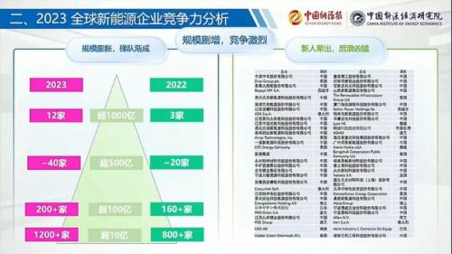 9月6日,在2023年太原能源低碳发展论坛上,中国能源经济研究院副院长魏秋利发布了“2023全球新能源企业500强排行榜”,并对行业做出了详细的阐述和分析。