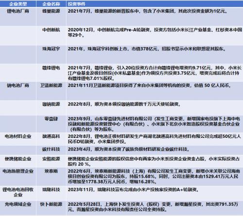 除了自研产品,小米系公司也是纷纷投资储能相关创业企业,近年部分投资动向如下: