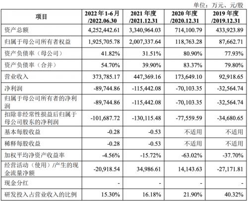 2019年、2020年、2021年和2022年上半年,蜂巢能源的营收分别为9.29亿元、17.36亿元、44.74亿元和37.38亿元,净亏损分别为3.26亿元、7.01亿元、11.54亿元和8.97亿元,扣非后净亏损分别为3.47亿元、7.76亿元、13.01亿元和10.17亿元。
