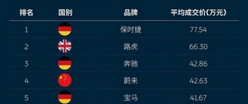 他透露了一组数据:研究咨询机构威尔森发布的一组豪华品牌在华平均售价排行榜上,保时捷以77.54万元强势夺冠,排在第2名的是路虎的66.30万元。蔚来的平均售价达到42.63万元排名榜单第四,仅次奔驰品牌的42.86万元,领先宝马的41.67万元与奥迪的32.50万元。
