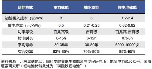 重力储能建设周期通常只需要6个月左右,寿命可达30-35年,转化效率约85%,因此从全生命周期角度重力储能度电成本较低,约为0.5元/kWh,具备良好经济性。当然,重力储能也有一定局限性。比如,相较抽蓄而言规模较小;同时重力储能响应速度达到秒级,但略低于电化学响应速度。