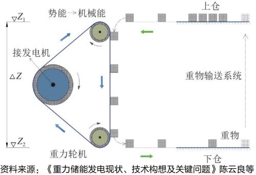 重力储能是一种安全性与经济性兼具的储能方式,主要是通过电力将重物提升至高处,以增加其重力势能完成储能过程,通过重物下落过程将重力势能转化为动能,进而转化为电能。