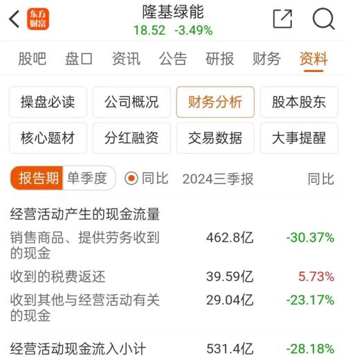 今年前三季度,隆基绿能“销售商品、提供劳务收到的现金”同比下降了30.37%,但其收到的税费返还,反而还上升了5.73%。
