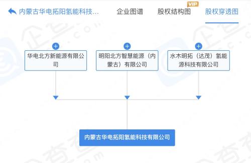 据企企查查股权穿透图显示,该公司由华电新能源旗下华电北方新能源有限公司、水木明拓(达茂)氢能源科技有限公司、明阳智能旗下明阳北方智慧能源(内蒙古)有限公司共同持股。