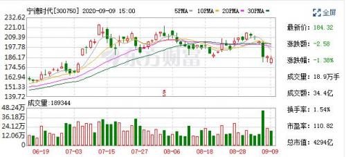 截至9月9日收盘,宁德时代总市值4294亿元,仍较上周五少了400多亿元。