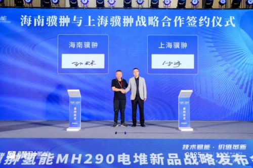 进入骥翀氢能战略合作签约仪式,标志着MH290电堆从实验室迈向广阔市场的关键一步。氢途科技、中自科技、芒果基金等多家企业代表共同登台,与骥翀氢能签署了战略合作协议。恰在当日,在党中央确定海南自贸港全岛封关具体时间的重大节点下,骥翀氢能进一步强化资源整合与战略协同,与海南骥翀签订战略合作协议,共同打造“绿电制绿氢-储运-应用”全产业链生态,助力海南打造零碳能源示范岛。